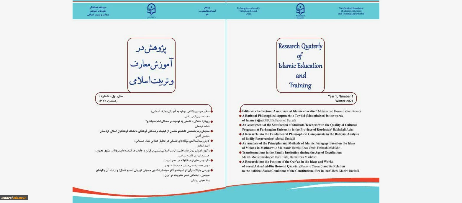 انتشار شماره اول ( زمستان 99) فصلنامه علمی- تخصصی « پژوهش در آموزش معارف و تربیت اسلامی» 2