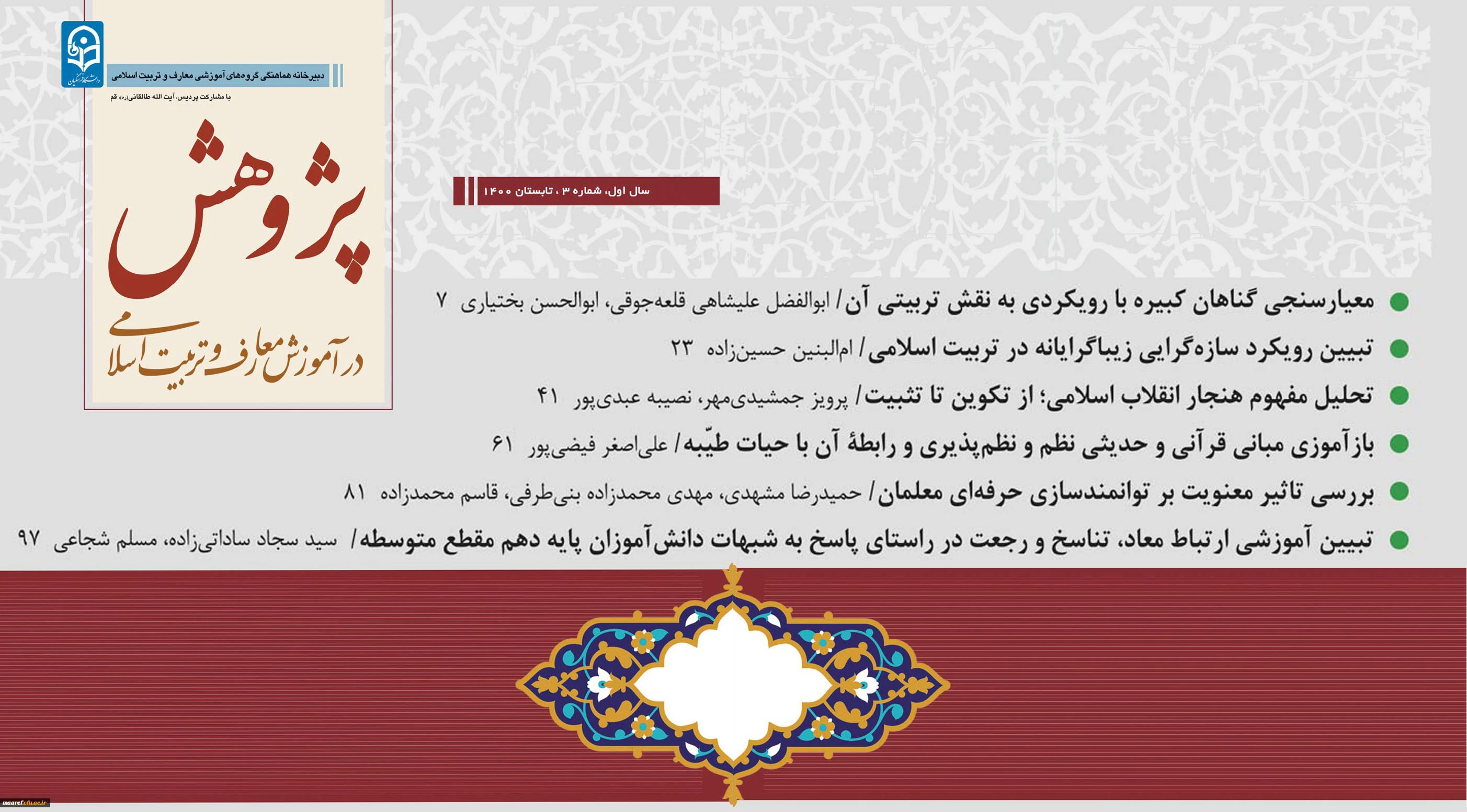 شماره سوم(تابستان 1400) فصلنامه علمی- تخصصی« پژوهش در آموزش معارف و تربیت اسلامی» منتشر شد 2